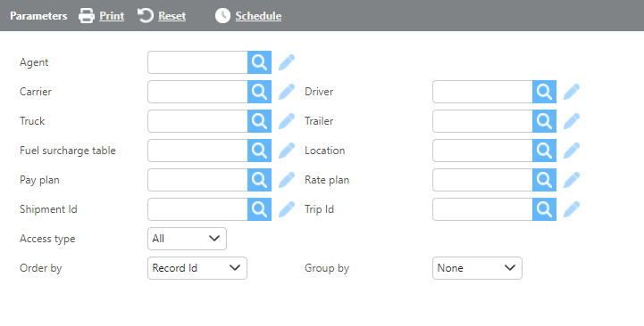 Trip id | Here you can select a specific Trip id to run this report for. |