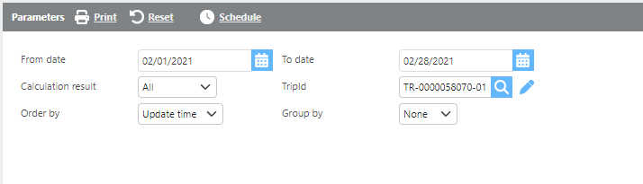 Trip Id | Here select a specific trip to run this report for. |