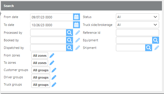 Groups | Filter the board by pickup or delivery zone, or by customer, driver, or truck custom groups. |