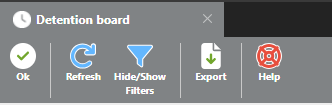 ![]() | Exits the Detention Board. You can also close it using the X on the Detention Board tab. |