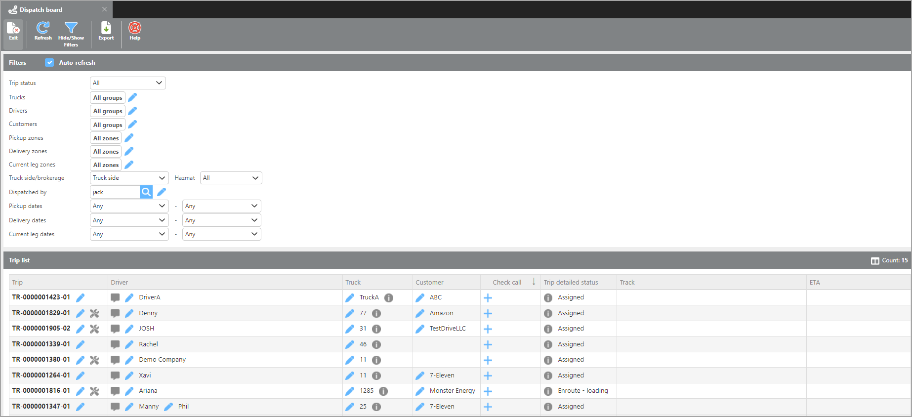 The dispatch board is a crucial tool for dispatchers to be able to accept check calls on the fly as well as know the locations of their fleet at any given moment. Using the tools provided, each user will be given a unique view into exactly what is important at any given time.