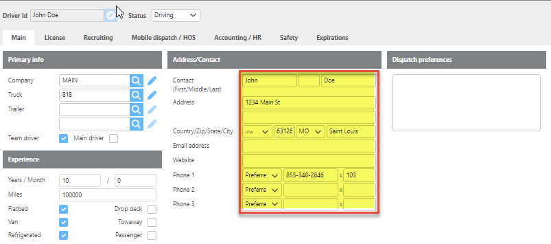 Ditat TMS does not retrieve driver information from QuickBooks.