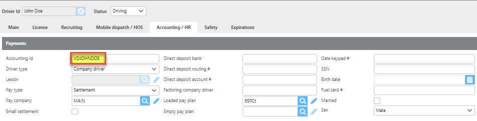 Ditat TMS will check if a driver with the same Accounting Id already exists and if it does it will update the Vendor with the information from Ditat.
