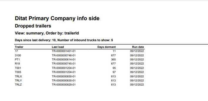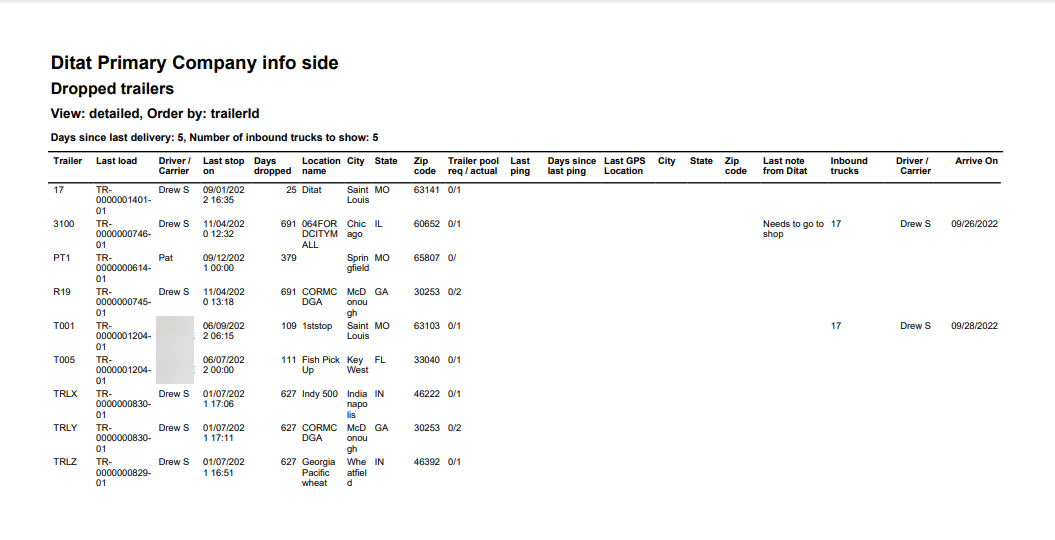 Dropped Trailers Report Default View