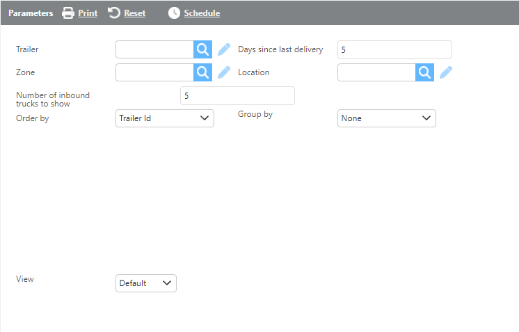 Zone | Select a zone to filter results to trailers dropped within that zone. |