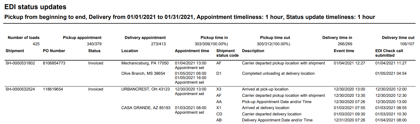 EDI Status Updates Results