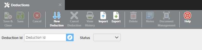 Deduction Id | Can be up to 25 characters and must be unique within the system. If you enter an ID that already exists, that deduction record will be loaded for editing. Otherwise, a new deduction record will be created. |