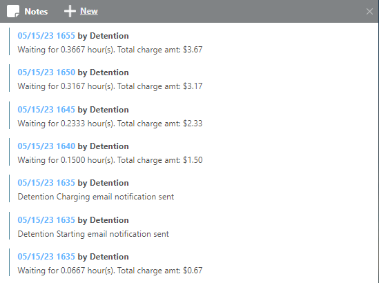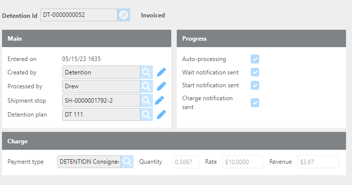 Detentions created here can be viewed on the Detentions Board and added to shipments during the invoicing process. This process can also be automated using detention plans. Click here for more information on setting up detention plans.