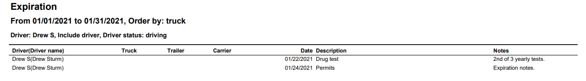 This report will show a list of all expirations that will happen during a selected date range. The report will allow you to select specific expiration types and only show those.