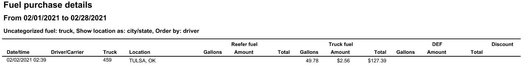 Driver/carrier | The driver or carrier associated with the purchase. |