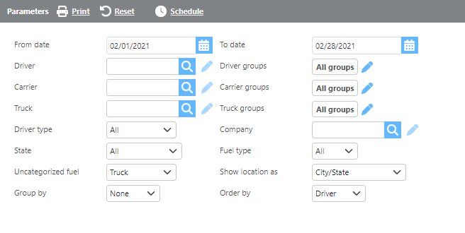 Driver | If a driver is selected, only fuel associated with that driver will display. |