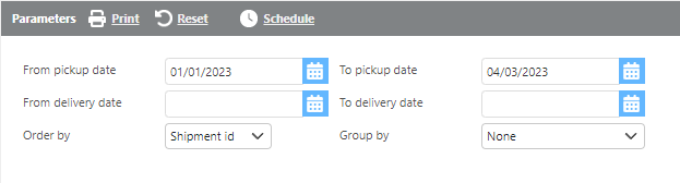From/To pick up date | Select a pickup date range. |