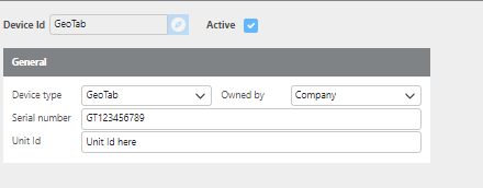 Unit Id | Enter the Vehicle Name exactly as it appears in GeoTab. This is how Ditat links the device. |