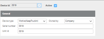 To begin tracking a truck using Motive, add the corresponding device to the truck's profile in the Tracking Device field.