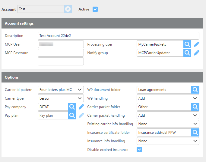 Carrier packet folder | Select which document management folder the carrier packet document should be applied to. |