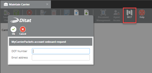 This button works as a carrier invitation. This will send a carrier packet to be filled out; once completed and accepted in MCP, the carrier will be created.