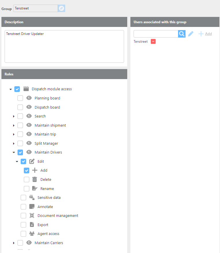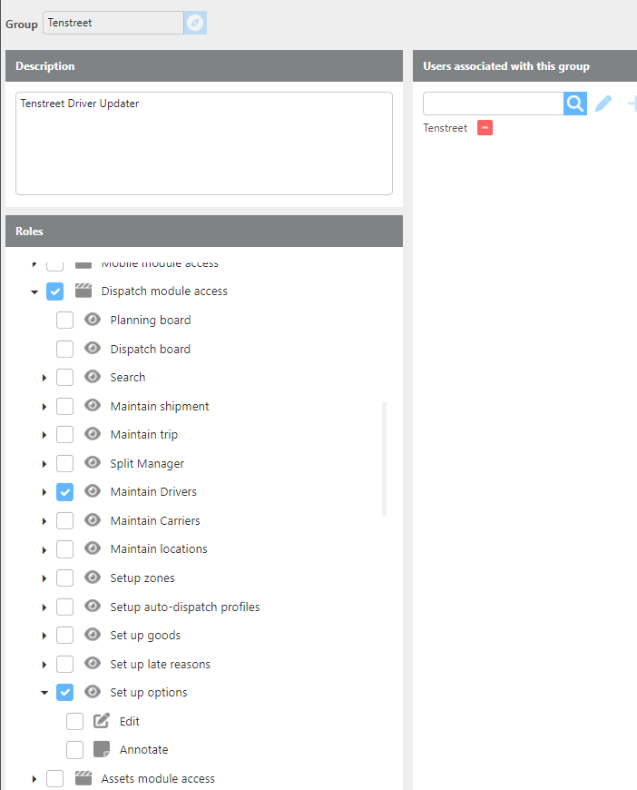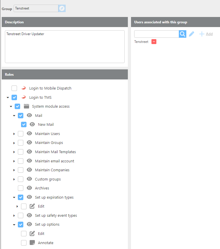 For this integration to work properly, a user for Tenstreet will need to be created and placed in a group with the below permissions.