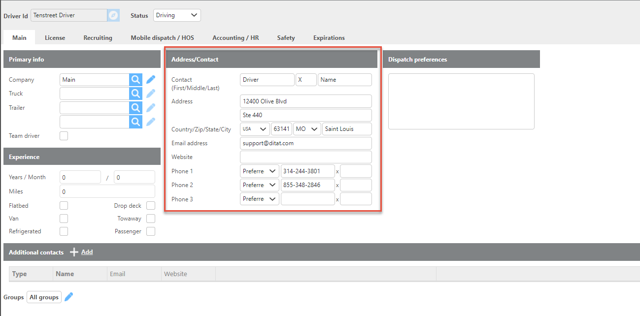 Notify group | In this field, you will select which Ditat group should receive Tenstreet notifications. |