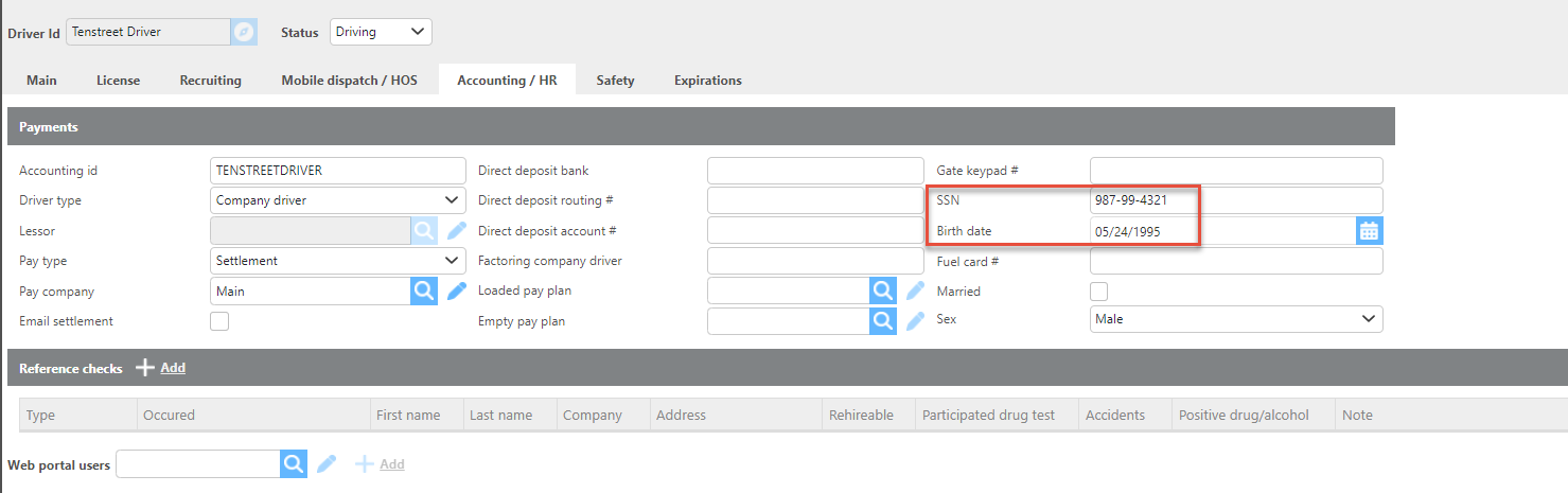 Driver Id | This field will populate from Tenstreet Id. |