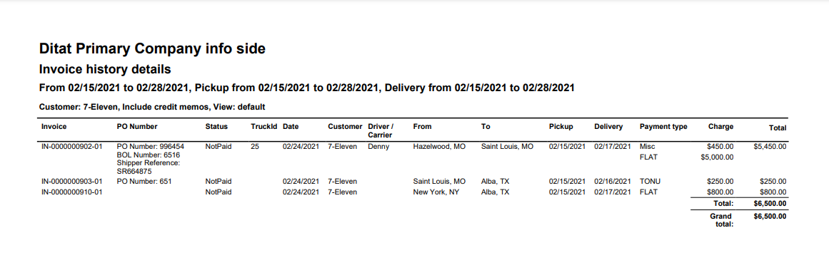 Invoice History Details Report Default View