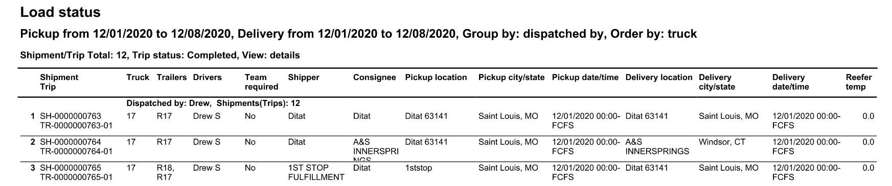 Consignee (Details) | This field will show the company name for the consignee of the load. |