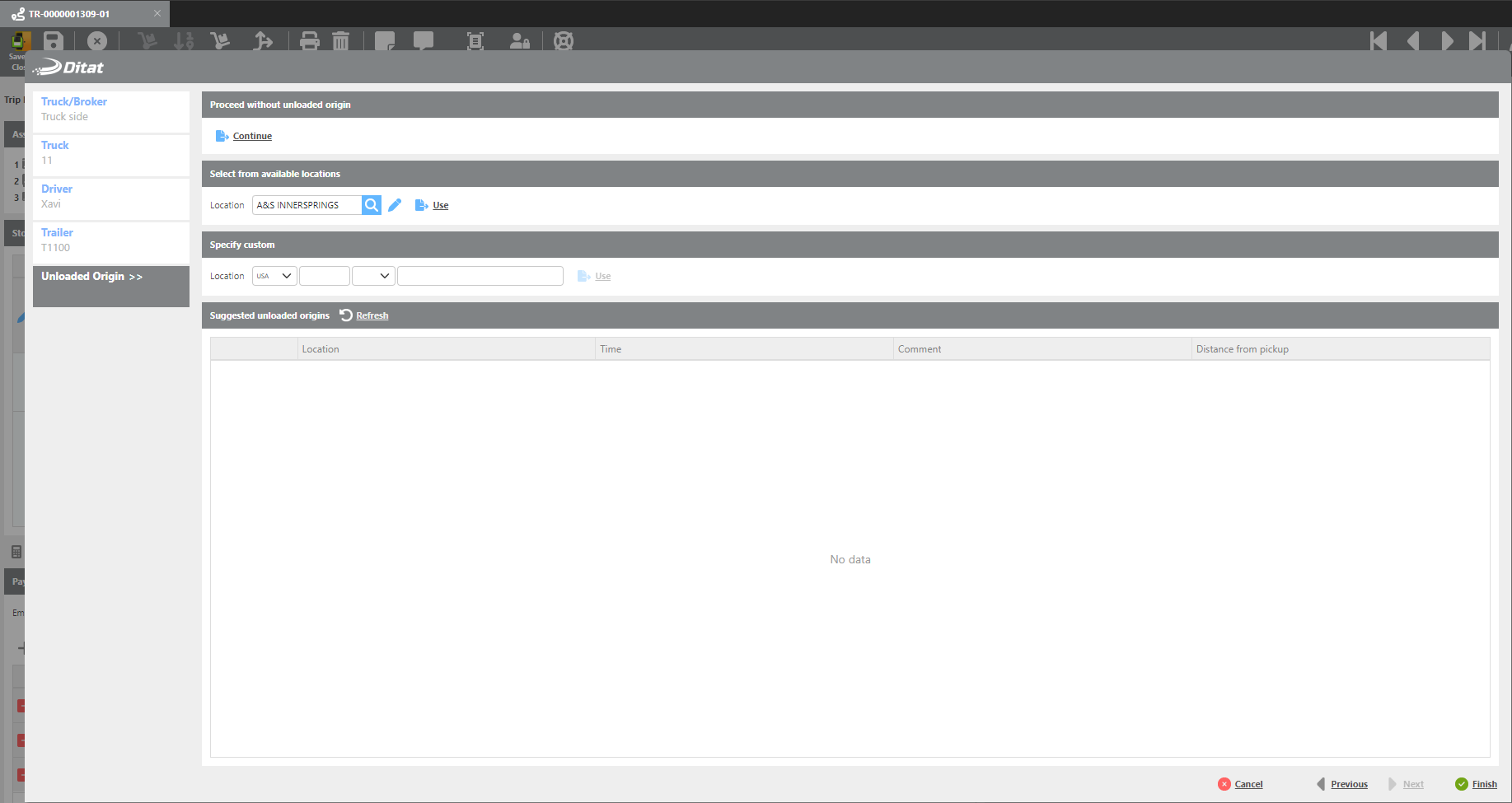 Complete the assignment – Assign the truck, driver, trailer, and unloaded origin as you would for a standard load.