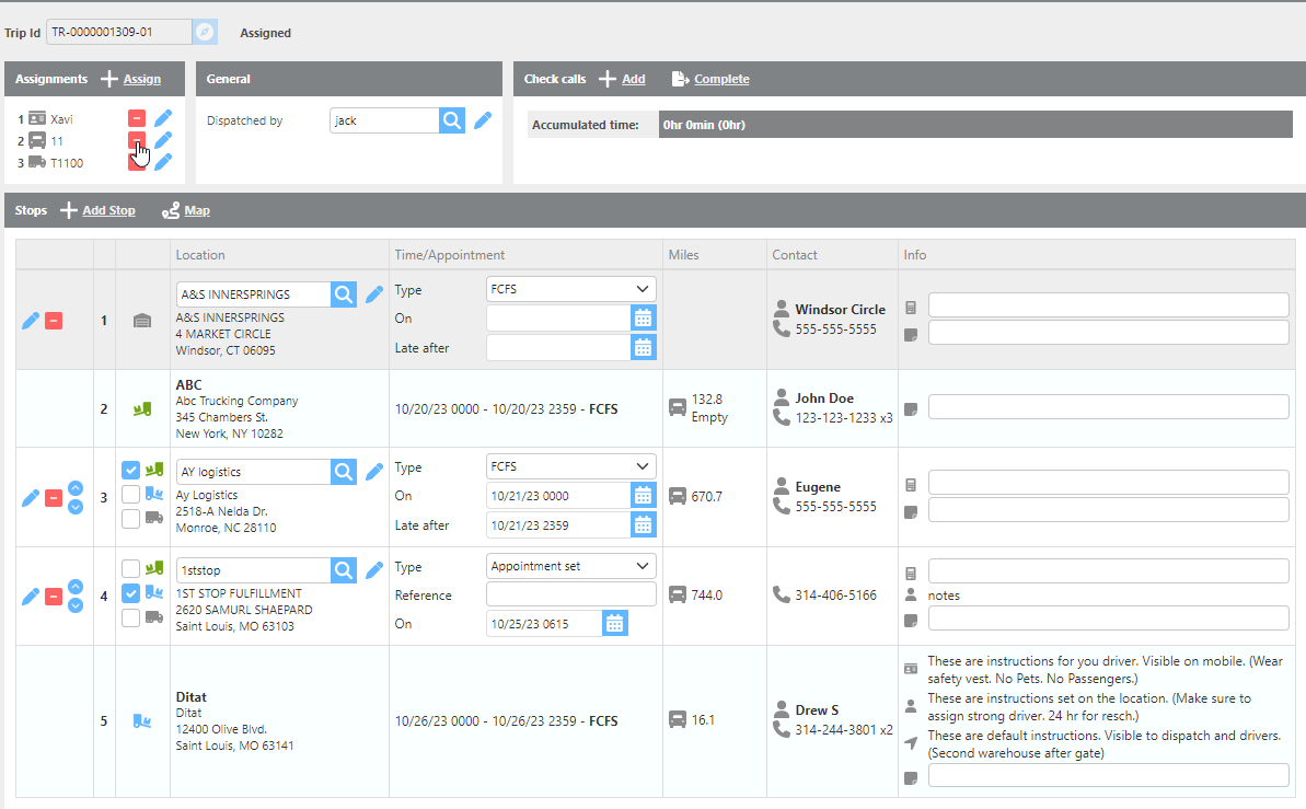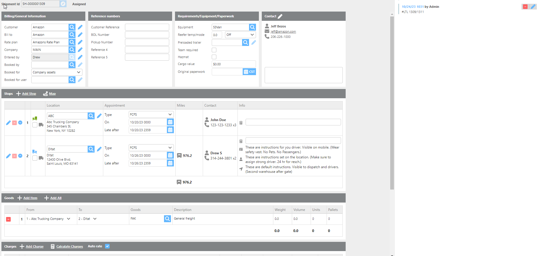 The Ditat TMS supports LTL (Less Than Truckload) loads, where a driver completes more than one shipment on a single trip while keeping billing separate and accurate for each customer.