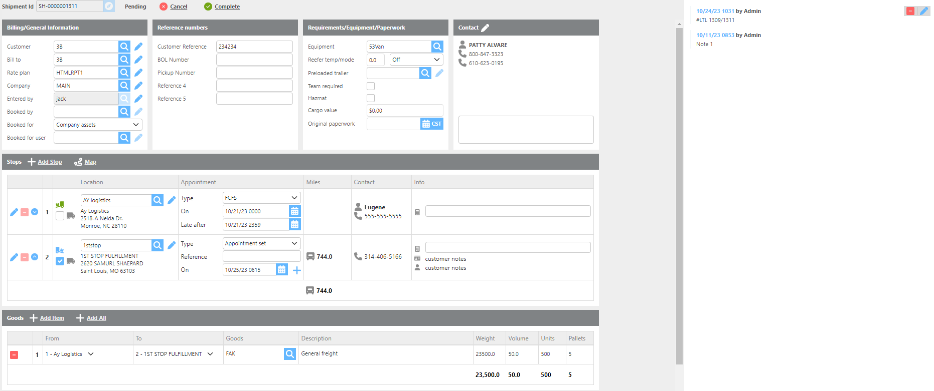 For this LTL example we will use the 2 shipments below. One load will be assigned to a driver the other load will be marked as completed without a driver being assigned so the miles are not duplicated.