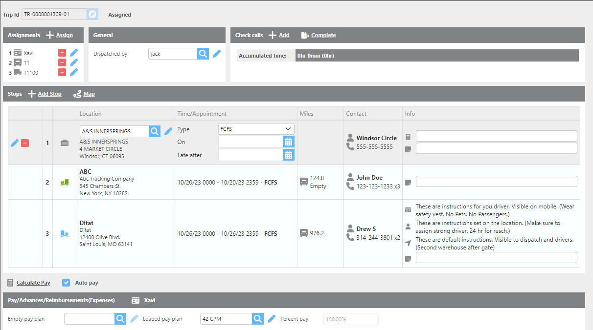 Calculate driver pay – The driver is paid based on the shipment assigned to the trip, just as with a standard load. Check calls are used to progress and complete the trip as normal.