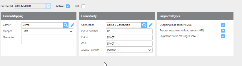 Incoming load tenders (204) | Check this box if this partner should send load tenders. |