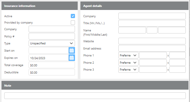 Insurance on file | Check this box if you have insurance documentation on file for this carrier. |
