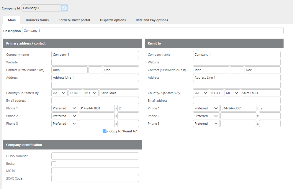 Copy to Remit To | Use this option if the remit-to address is the same as the primary company information. |
