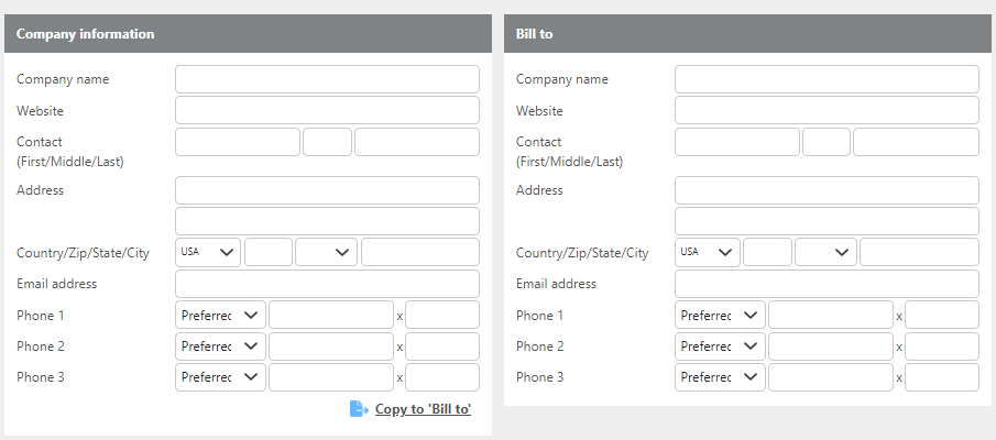 Copy to Bill To | Click this if the billing information is the same as the company information. |