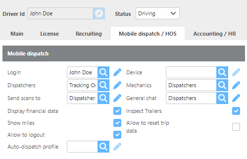Allow to reset trip data | If checked, the driver can restart check calls from the beginning. This is intended for demo and testing purposes and should remain unchecked for most drivers. |