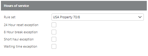 Rule set | Select the HOS rule set this driver uses. Only required if integrated with an HOS provider. |