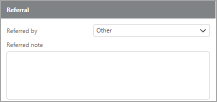 Referred by | Select the referral source from the drop-down list. |