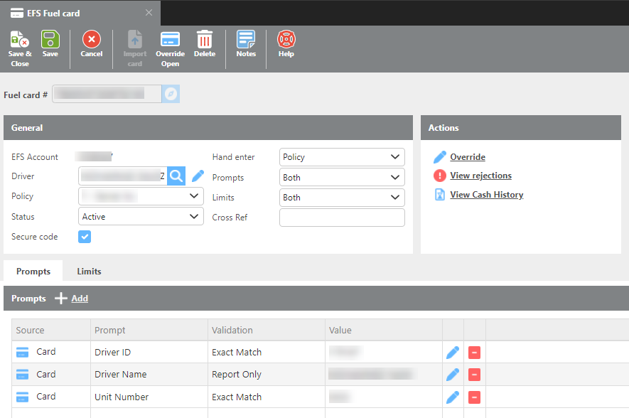Maintain EFS Fuel Cards