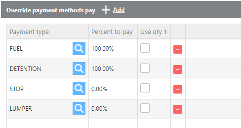 Example: If detention is on a shipment, the driver could receive 100% of that payment type, while stop charges could be set to 0% so the driver receives no pay for that type.