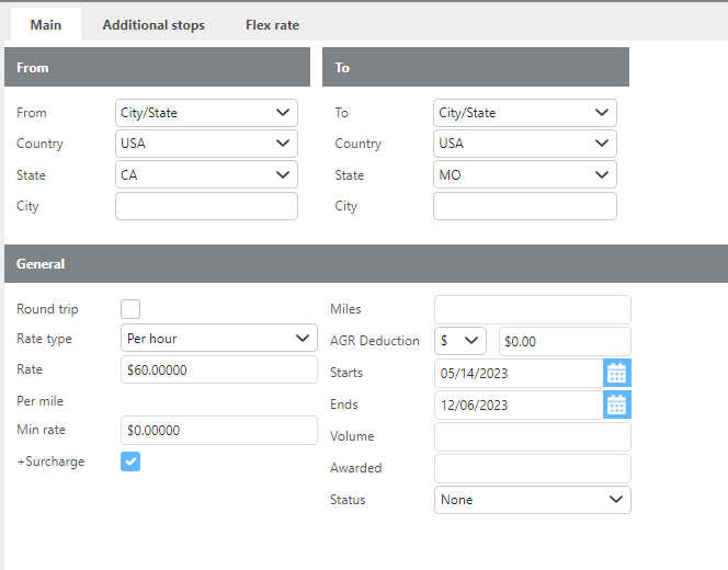 Rate type | Select whether this lane is rated as Fixed, Per Mile, or Per Hour. |