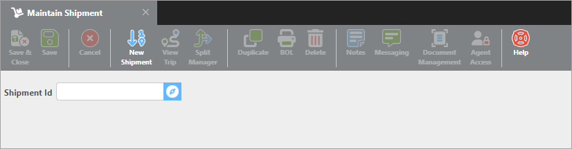 Shipment ID – A unique ID of up to 25 characters. If an existing ID is entered, that shipment record will be retrieved for editing.