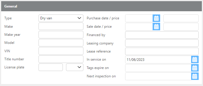 Deactivated on | If the trailer is no longer active, enter the deactivation date manually or using the calendar tool. This field only appears when the trailer is marked as inactive. |