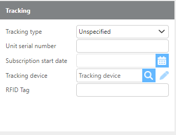 Tracking type | Select the tracking type from the available options: RCom, SkyBitz, Unspecified, Other, or None. |