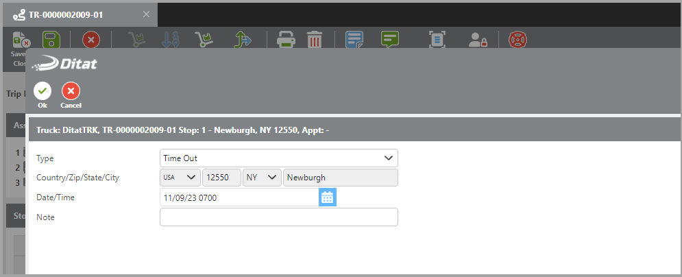 After a trip is assigned to a driver, it is set to Assigned status. The dispatcher must enter the first check call to move the trip to Enroute status.