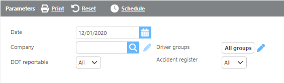 DOT reportable | Here select if DOT reportable or not reportable accidents should show. All will show both. |