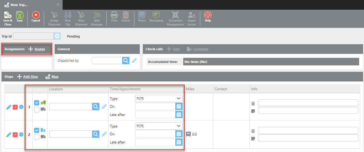4. Add stops – Assign assets – Select the Assign tab and complete the following: