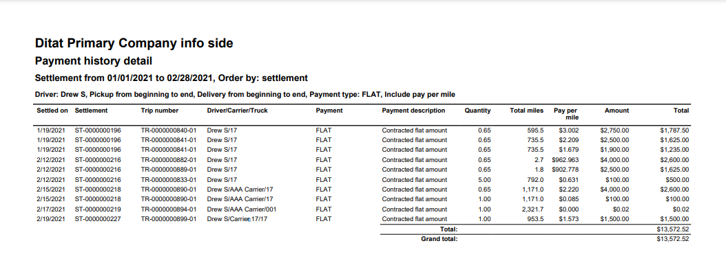 Driver | If a driver is selected, only payment history for that driver will display. |