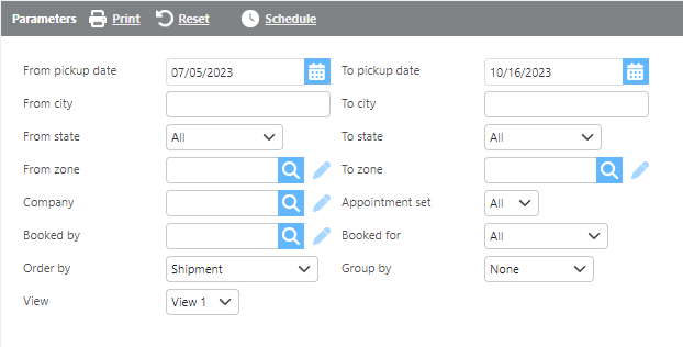 From zone | Select a specific pickup zone and only loads with that pickup zone will show. |