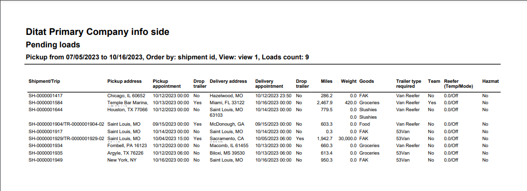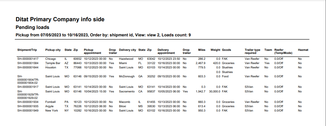 This report will show shipments/trips that need to be assigned still. This report can be run for loads coming into or leaving a location. It can also be run for loads that were booked for brokerage or company assets.