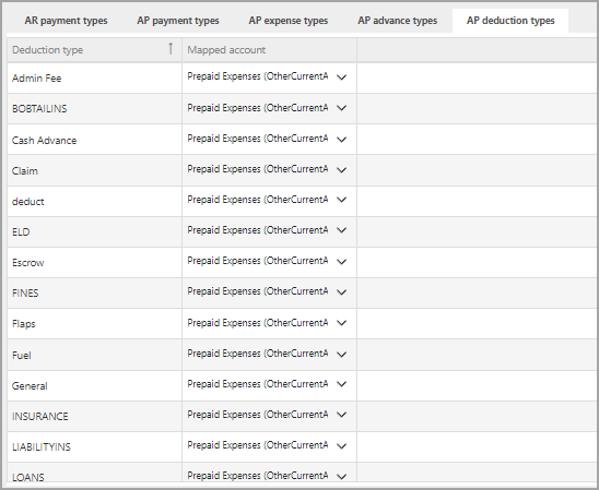 Map expense types to accounts