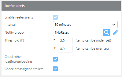 Enable reefer alerts | Must be enabled by Ditat. Contact sales@ditat.com for details. |